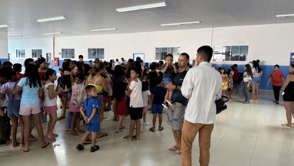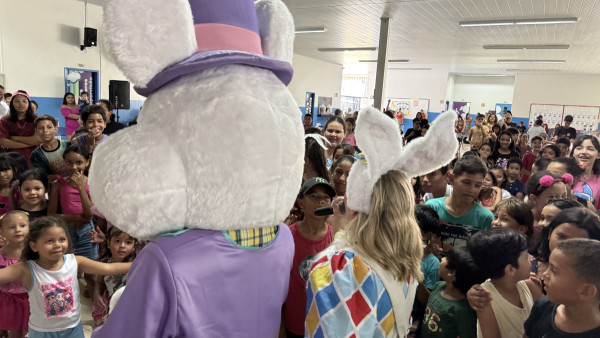 Os chocolates distribuídos durante a ação foram arrecadados por meio do evento beneficente “Tecogame”Ela também ressaltou a participação do Centro de Referência de Assistência Social (CRAS) Fernando Rocha e o envolvimento da equipe escolar. “É um trabalho em conjunto com diretores, professores e toda a comunidade. Queremos cada vez mais atuar no desenvolvimento social dessas famílias”.